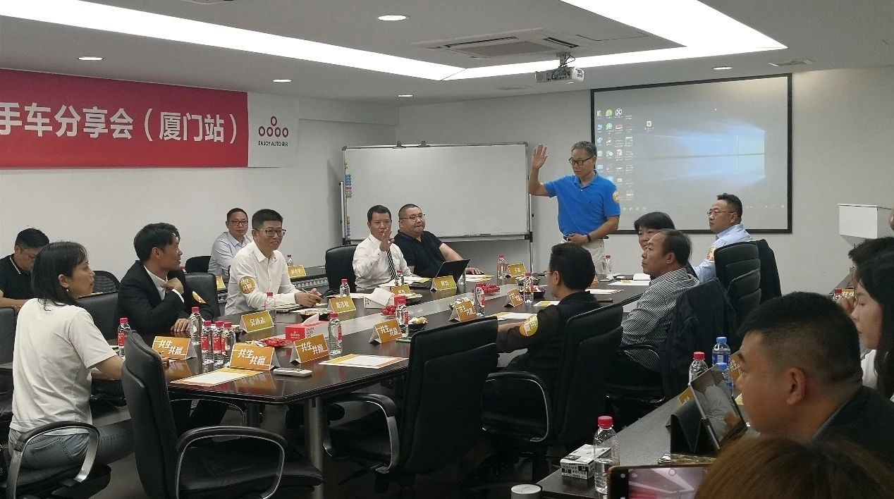 11月13日下午,“共生·共贏——經(jīng)銷商集團(tuán)二手車分享會”走進(jìn)盈眾4S店。中國汽車流通協(xié)會副秘書長羅磊、廣匯二手車總經(jīng)理田東、河南威佳副總裁李剛強(qiáng)、浙江元通二手車總經(jīng)理孫中平、臨沂遠(yuǎn)通副總經(jīng)理周景霞、山東遠(yuǎn)方二手車總經(jīng)理董杰、盈眾控股集團(tuán)副總裁陳偉敏、盈眾易新二手車副總經(jīng)理張杰等20多家經(jīng)銷商集團(tuán)、30多位代表齊聚一堂,深入探討4S經(jīng)銷商集團(tuán)二手車業(yè)務(wù)的發(fā)展之路。