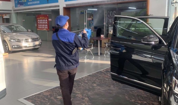 ▲各4S店按要求每日對展廳、展車進行消毒