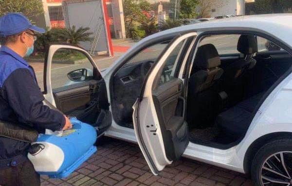 ▲對試駕車進行清洗消毒