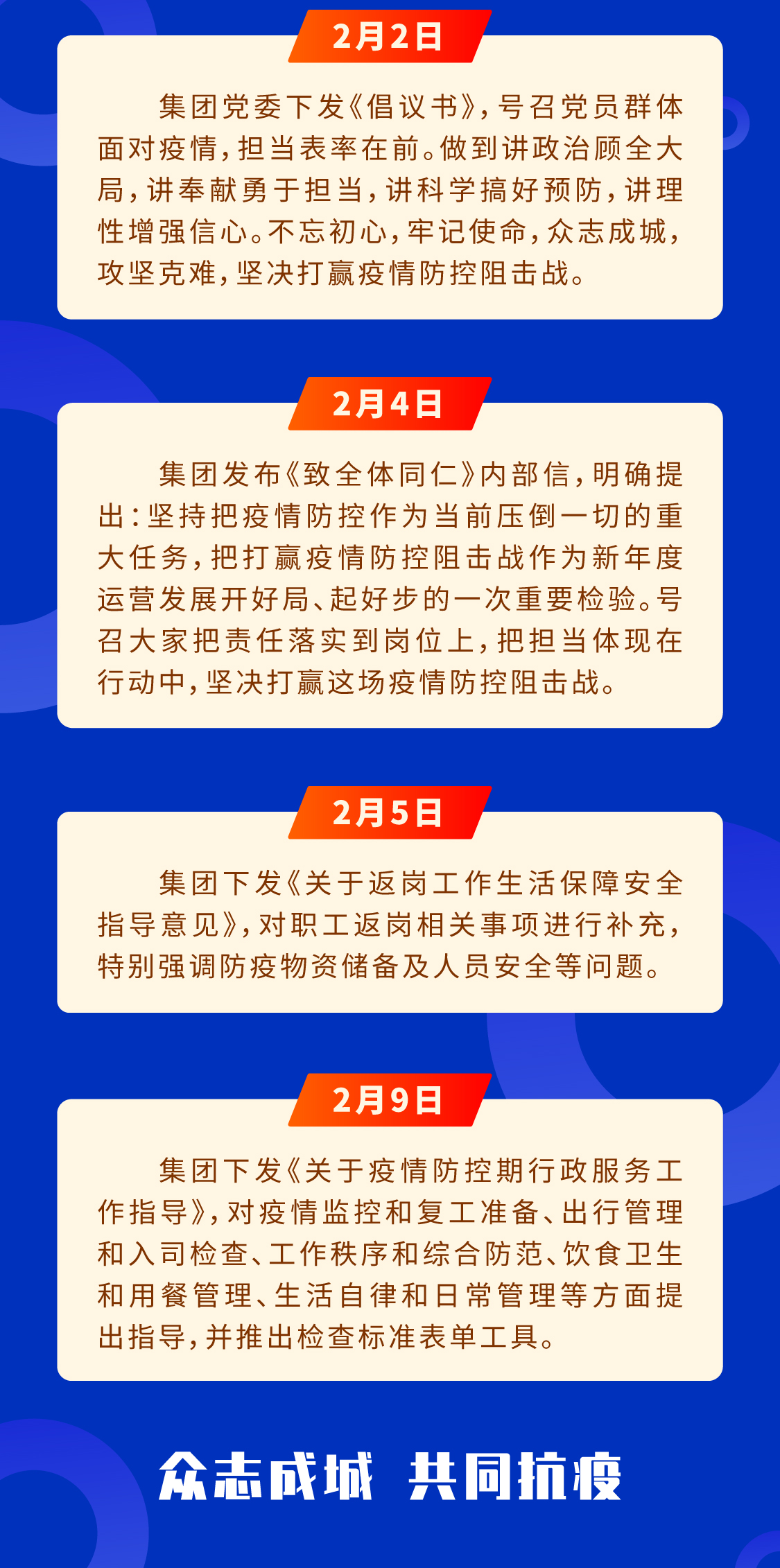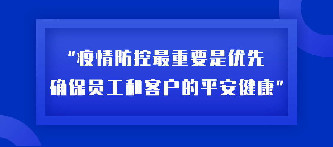 張總多次對工作小組強調(diào):“疫情防控最重要是優(yōu)先確保員工和客戶的平安健康”。陳主任表示,基層一線是對外服務(wù)的窗口,是防控工作重中之重,集團全體同仁多一分擔當,員工的安全就多一分保障,我們的客戶和家人就多一分安康。