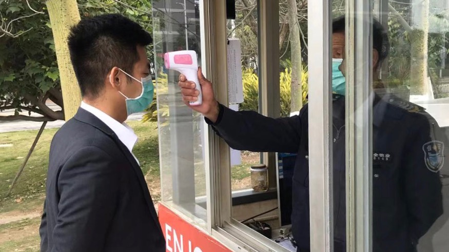 ▲員工上崗戴口罩,進行體溫檢