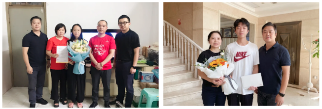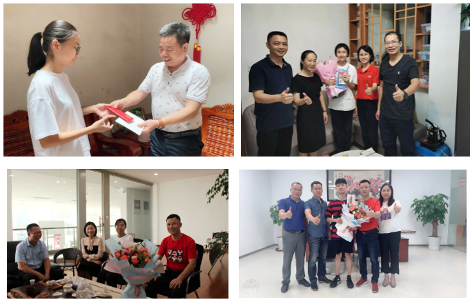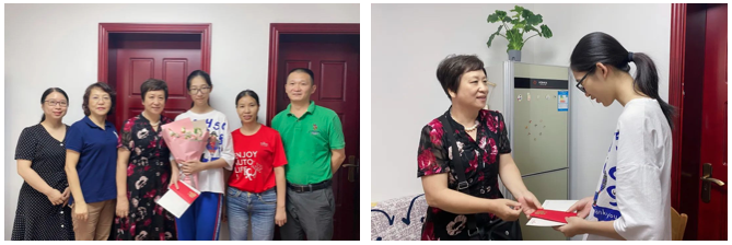 集團(tuán)黨委書記鄭藝紅等領(lǐng)導(dǎo)來(lái)到員工家中,代表集團(tuán)張桂陽(yáng)董事長(zhǎng)和公司向員工其及子女表示熱烈的祝賀和衷心的祝福,并送上盈眾基金會(huì)精心準(zhǔn)備的獎(jiǎng)學(xué)金、禮品和鮮花。同時(shí)送達(dá)的,還有公司給員工子女的一封信,信中對(duì)他們金榜題名表示熱烈祝賀,同時(shí)深情寄語(yǔ),期望學(xué)子們帶著期待與憧憬,在全新跑道上,更好地照顧自己、更好地自我管理,鍛煉身體、學(xué)習(xí)知識(shí)、體驗(yàn)生活、不斷成長(zhǎng),在追求理想的道路上實(shí)現(xiàn)人生的目標(biāo)與價(jià)值。