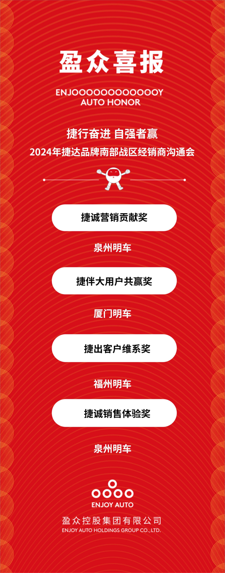 3月14日,以“捷行奮進(jìn) 自強(qiáng)者贏”為主題的2024捷達(dá)品牌南部戰(zhàn)區(qū)經(jīng)銷商溝通會(huì)在??谂e辦。盈眾捷達(dá)團(tuán)隊(duì)?wèi){借2023年在銷售業(yè)績、市場表現(xiàn)、運(yùn)營管理、大用戶拓展等方面的出色表現(xiàn),榮獲